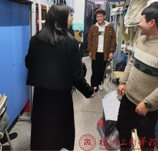 2023年2月9、10日福州工商学院学生同学们陆陆续续返校,2022级计算机科学与技术专业、区块链工程专业、电子信息工程专业辅导员何奕婷下到宿舍关怀学生的安全,安抚学生情绪,了解学生学习、生活等方面的困难,宣传疫情过后学校的管理政策,查看返校学生的宿舍卫生情况。