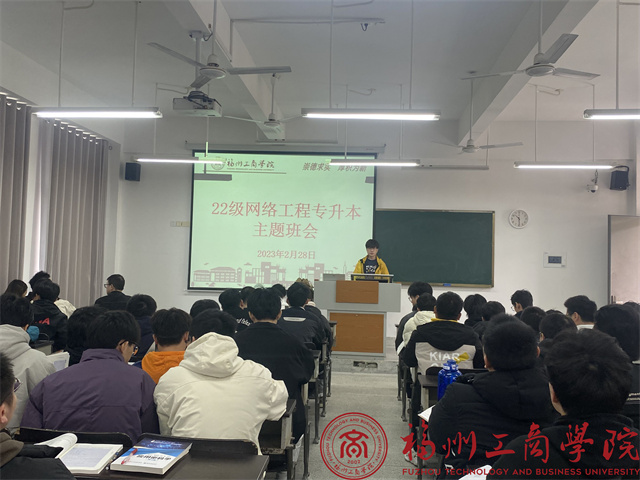 为深入贯彻落实学校疫情防控和防诈骗宣传工作,强化校规校纪教育,迎接学校评估工作,引导学生更快地投入到新学期的学习生活中,2月28日,22级网络工程专升本2班召开“开学第一课”主题班会。此次班会由班主任陈一昌老师主持。