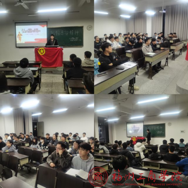 活动伊始,由学生干部带领同学们了解雷锋同志以及他的一生,重点学习什么是雷锋精神、该精神的时代内涵与具体内容。邀请团员代表上台分享我们广大青年在日常中该如何践行雷锋精神以及怎样把雷锋精神一代代传递下去,最后,同学们共同观看由共青团中央出版的《雷锋——永不过时的“小鲜肉”》动画片。
