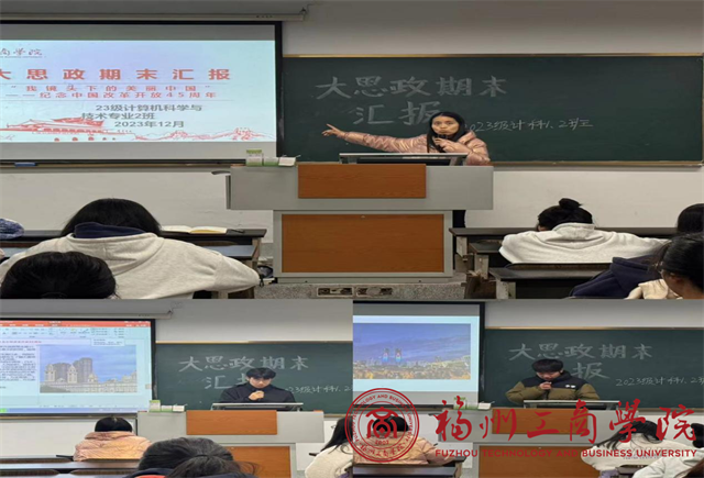 随着我国社会经济的快速发展,思想政治教育在各个领域的重要性日益凸显。为了进一步提高广大师生的思想政治素质,我校积极开展了一系列思想政治教育活动。12月19日,老师秦莉萍带领2023级计算机科学与技术学生在教学楼F205组织了一次大思政期末汇报。
