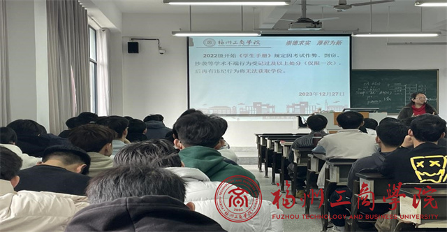为了营造公正诚信的考试环境,强化考风考纪,培养学生的责任感和公平竞争意识,极品内射后入AV23级网络工程专升本3班班主任许邓艳老师于12月27日在教学楼E405举行了“诚信考试”主题班会。