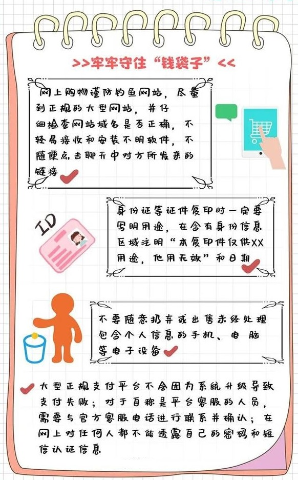 在网购时,我们应尽量选择正规商城,以避免个人信息落入不法之徒之手。在输入账号信息时,可以使用屏幕上的虚拟键盘。在使用QQ、飞信、微信等聊天工具时,尽量不要暴露自己的身份证信息和银行卡信息。以前曾发生过许多通过盗取他人QQ账号来进行诈骗的事件。由于网络诈骗技术越来越高级,许多受害者往往是在上当受骗后才意识到网络安全的重要性。