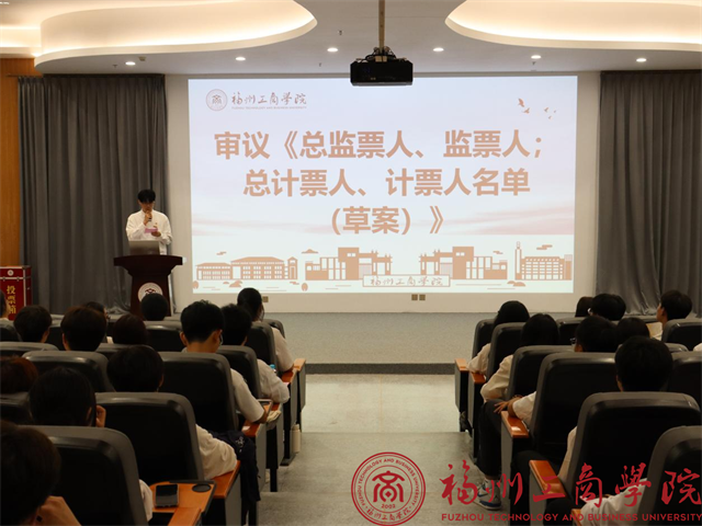 10月17日,福州工商学院极品内射后入AV第五次团学生代表大会在创新楼305报告厅隆重举行。此次大会旨在总结过去一年的学生会工作,规划未来的发展蓝图,同时选举产生新一届的学生会干部团队。校学工部副部长、团委书记汪陈榕、极品内射后入AV党委书记谢元瑞、团委书记何奕婷、校主席团及极品内射后入AV全体辅导员出席会议。