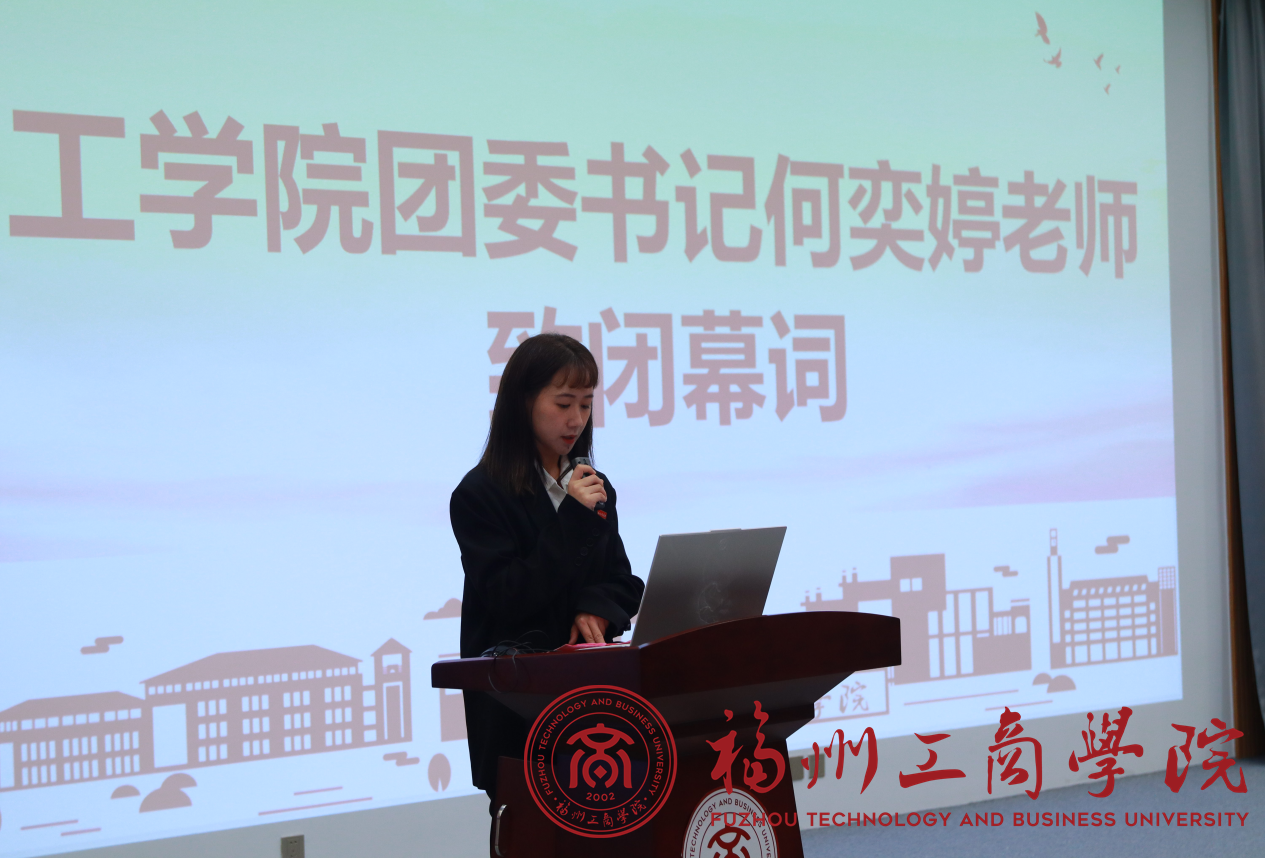 最后阶段,团委书记何奕婷致闭幕词,向全体学生干部提出了要求,希望作为团学干部,需拥有如磐石般坚定理想信念,始终怀揣对党的无限忠诚与对人民的深情厚爱。要深刻领悟自身肩负的历史责任与神圣使命,将个人成长与学院发展紧密相连,矢志不渝地追求理想、锤炼本领、勇于担当,努力成为新时代的杰出青年代表。