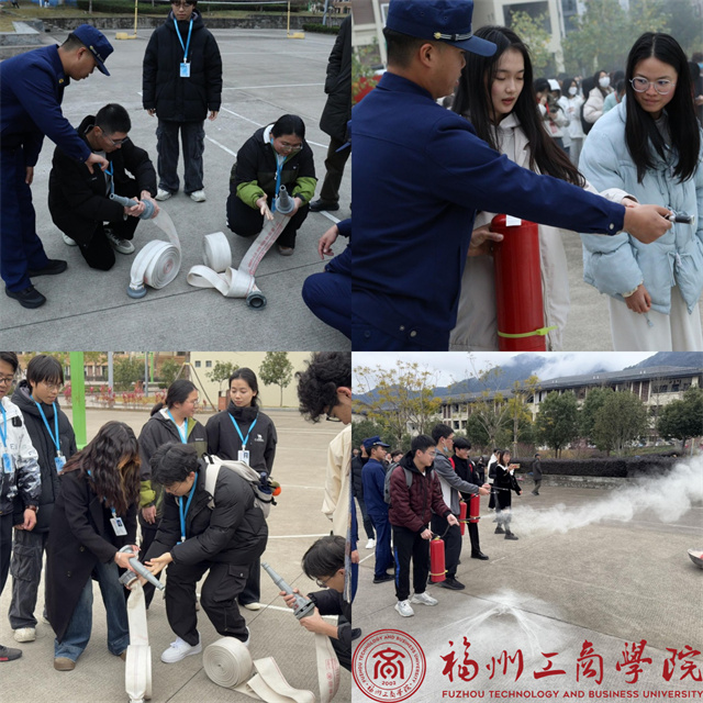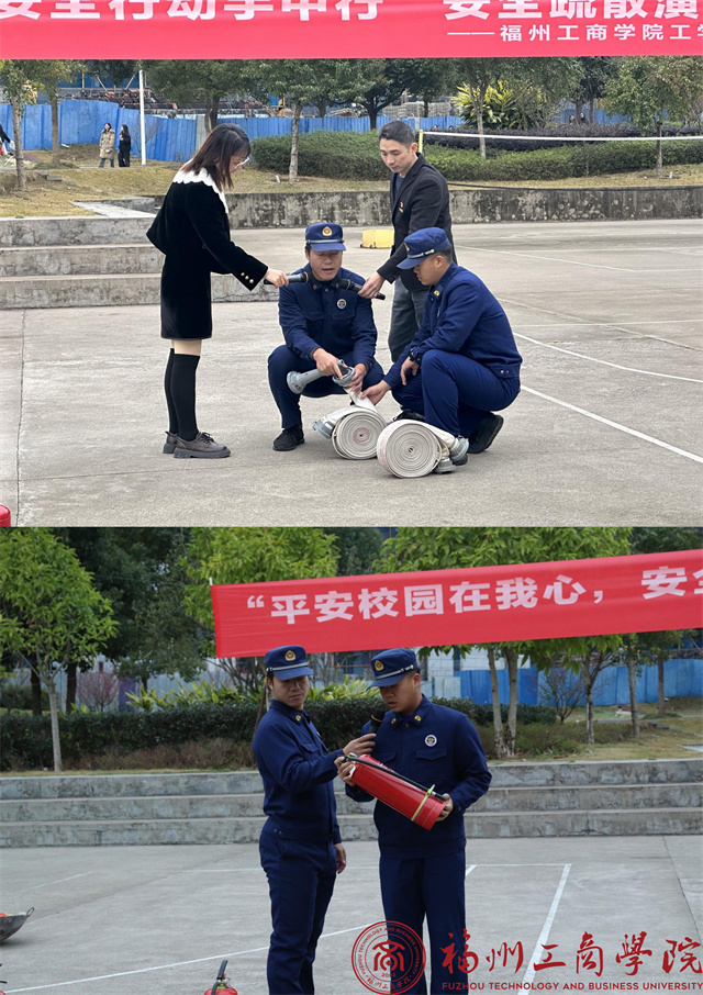 随后,消防人员进行了灭火器灭火和消防水管喷水灭火的实际操作展示。他们熟练地操作着消防器材,迅速扑灭了模拟火源。部分同学也现场体验灭火器的使用,让同学们在实践中掌握灭火技能,增强了他们的消防安全意识和自救能力。