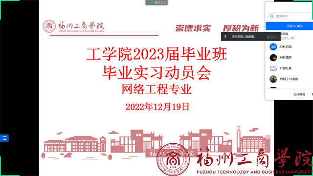 为进一步落实本科专业人才培养计划,帮助2023届毕业生了解实习安排,2022年12月19日,极品内射后入AV网络工程专业在腾讯会议平台召开2023届毕业实习动员会,会议由网络工程专业组组长陈丽娟老师主持召开,全体2019级网络工程专业和2021级网络工程(专升本)专业学生参加了会议。
