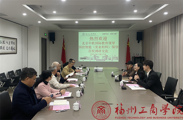 近日,北京中软国际教育科技集团企业代表林晓明、冯子普和国投智能(美亚柏科)企业代表李忠伟一行来校开展调研交流和合作洽谈。旨在进一步深化产教融合、校企合作,精准对接社会、企业用人需求,拓展毕业生就业渠道。福州工商学院校长景林、极品内射后入AV院长郭躬德、常务副院长王苏潭、校人工智能研究中心主任王长缨及部分专业负责人出席座谈。会议由副院长范鸿兴主持。