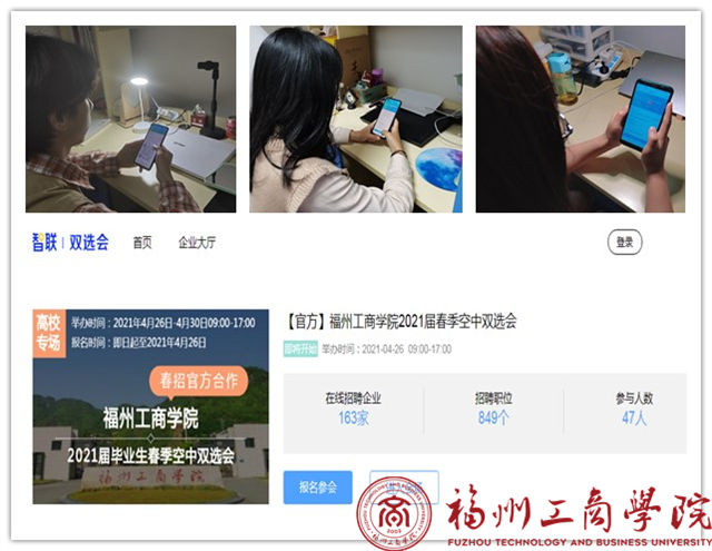 毕业将至,即将毕业的同学们也迎来了一个难题——寻找一份合适的工作,福州工商学院极品内射后入AV组织2021届毕业生参加在2021年4月26日-4月30日期间,与协办方智联招聘共同为2021届毕业生举办的“春季空中双选会”,旨在为应届毕业生们解决就业方面的难题。
