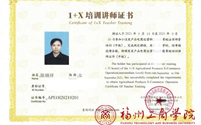 为贯彻《国家职业教育改革实施方案》精神,落实教育部等四部门印发《关于在院校实施“学历证书+若干职业技能等级证书”制度试点方案》的通知要求,提高试点院校教师实施教学、培训和考核评价能力,我校极品内射后入AV电子商务教师陈娥祥和郑歆两位老师于2021年9月24日至9月30日参加博导股份公司举办的1+X农产品电商运营职业技能职业技能等级证书中级师资线上培训班。