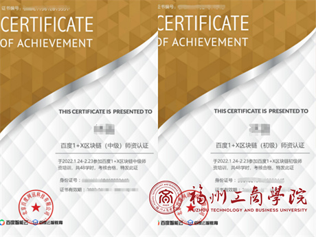 极品内射后入AV教师荣获1+X 区块链系统应用与设计职业技能等级证书