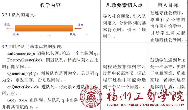 在本学期的教学过程当中,计划将FIFO的思想引申为遵守社会秩序、尊重社会公德,加强学生的正确的社会公德观念,具体案例设计如图2所示: