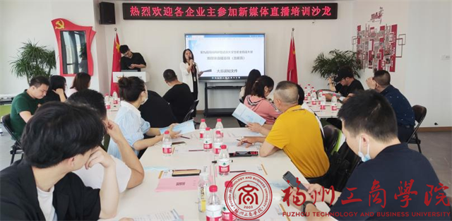 主讲老师张东志主要从短视频的推广运营、内容运营、用户运营和活动运营来进行讲解,同时解析做好新媒体运营的关键思维。同时,主讲老师江洪波主要从直播角度分析一场好的带货直播最重要的是处理好人、货、场三要素的关系以及直播带货流程与组织架构、直播间场景搭建、直播间脚本设计等内容。现场主要有20余位企业主一起进行探讨与交流,共话新媒体行业发展。同时富民云咖魏总解析第九届海峡两岸暨港澳大学生职业技能大赛新媒体直播赛项关于供应链联盟入驻通道。主讲老师耐心解惑由企业们提出的新媒体的相关疑问,企业主之间互相交流,寻求合作机会,现场气氛十分活跃。