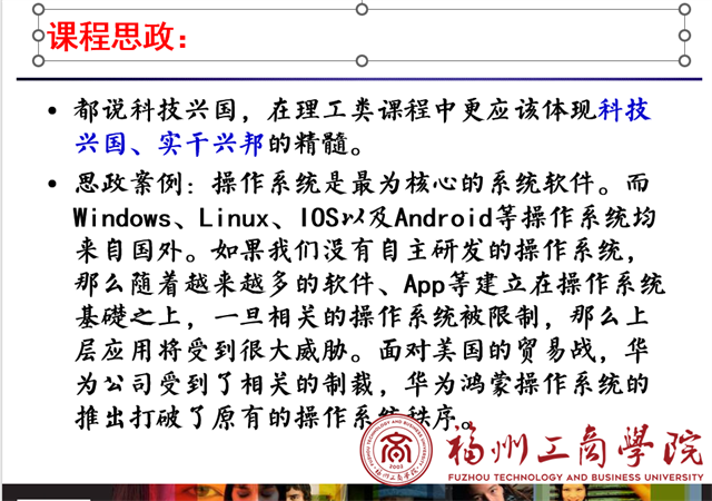 参会教师分别就各自己讲授的专业课程如何挖掘和融入思政元素进行了分享和交流。陈一昌老师针对《数据库课程及应用》课程分别从数据发展历程与科技强国、数据库安全性与法律意识、数据库完整性与制度约束等方面分享了思政元素的引入和教学设计。比如让学生了解我国数据库的发展历程,认识我国数据库产品的优缺点和应用情况,清楚我国在自主系统软件领域中所处的位置,明确每位计算机专业的工程师肩上的责任,培养学生的民族自豪感及自信心,同时树立科技强国的思想,激发学生的爱国主义热情。章芹老师针对《操作系统》课程如何在介绍国内外操作系统新技术与发展趋势的同时,结合国家建设和民族复兴的新时代背景,激发学生科技报国的家国情怀和使命担当分享了自己的看法。从当前国家倡导开展自主可控软件的研究与开发,以摆脱国外在软件行业的垄断和控制,因此首先需要从计算机操作系统的角度入手,可引导学生思考如何研发我国自主可控的操作系统软件等。