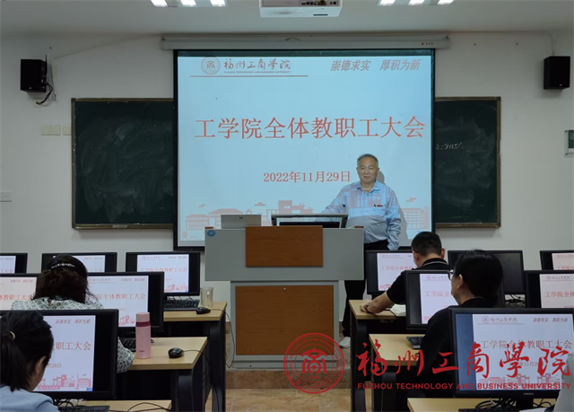 11月29日下午在励群楼S302,召开了2022-2023学年第一学期(线下)全体教职工大会。会议由学院院长助理范鸿兴主持,极品内射后入AV全体教职工参会。