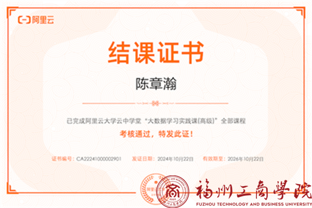 10月18日至10月22日,极品内射后入AV教师陈章瀚参加了阿里云大学云中学堂举办的“大数据学习实践课(高级)”课程,并凭借出色的表现,顺利通过了全部课程的考核。此次学习经历不仅显著提升了陈老师及其团队在大数据处理和分析方面的能力,也为他们未来的学术研究和实际工作奠定了坚实的基础。