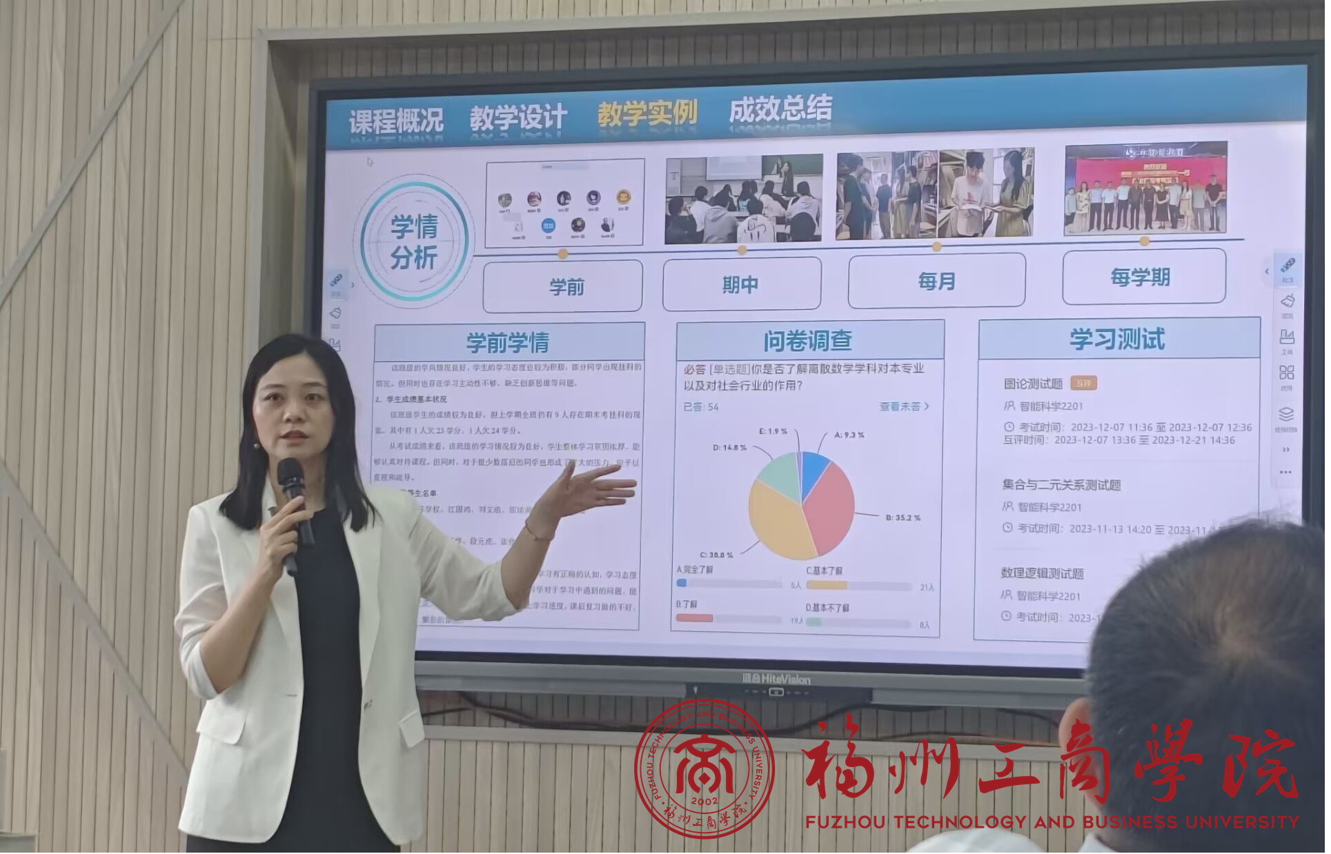 会上,林晶以“如何设计与组织参与式课堂的教学创新实践——以离散数学课程为例”为题,系统分享了“课程概况—教学设计—教学实例—成效总结”四维一体教学模式。她结合《探寻数学之美,怀揣项目报国——欧拉公式的前世今生》等课程思政案例,阐释如何通过跨学科项目驱动、情境化问题链设计激发学生创新思维。林晶特别强调,参与式课堂需以学生为中心,借助数字化工具实现“学用结合”,并展示了其在全国教学创新大赛中获奖的互动教学设计范例。