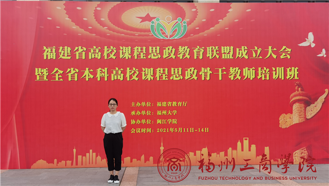 为贯彻落实习近平总书记关于教育重要论述和重要指示批示精神,深化落实教育部《高等学校课程思政建设指导纲要》,提升教师课程思政建设的意识和能力,促进各高校经验交流和成果共享,形成全面推进课程思政建设的良好氛围,由福建省教育厅主办,福州大学承办,闽江学院和新华网协办的福建省高校课程思政教育联盟成立大会暨全省本科高校课程思政骨干教师培训班于5月11日-14日在福州大学举行。来自福建省39所本科高校的134名高校分管校领导、教务处负责人、骨干教师参加了本次培训。我院施达雅老师参加了本次培训。