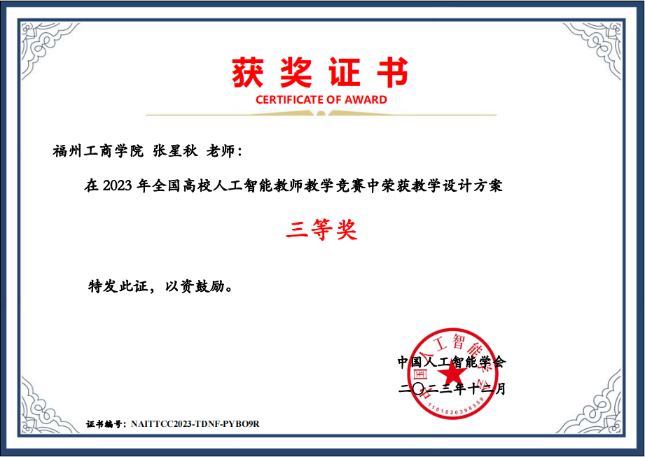 近日,由中国人工智能学会主办的全国高校人工智能教师教学创意竞赛落下帷幕。经过激烈角逐,我校极品内射后入AV教师张星秋凭借出色的作品在众多参赛者中脱颖而出,荣获国赛三等奖,为学校赢得荣誉。