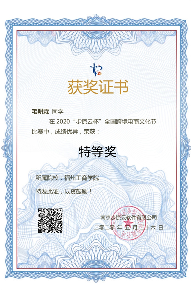2020步惊云杯全国跨境电商文化节毛耕霖个人特等奖