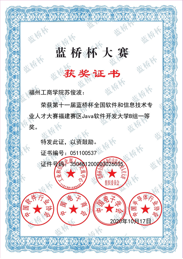 第十一届蓝桥杯全国软件和信息技术专业人才大赛省赛苏俊波个人一等奖